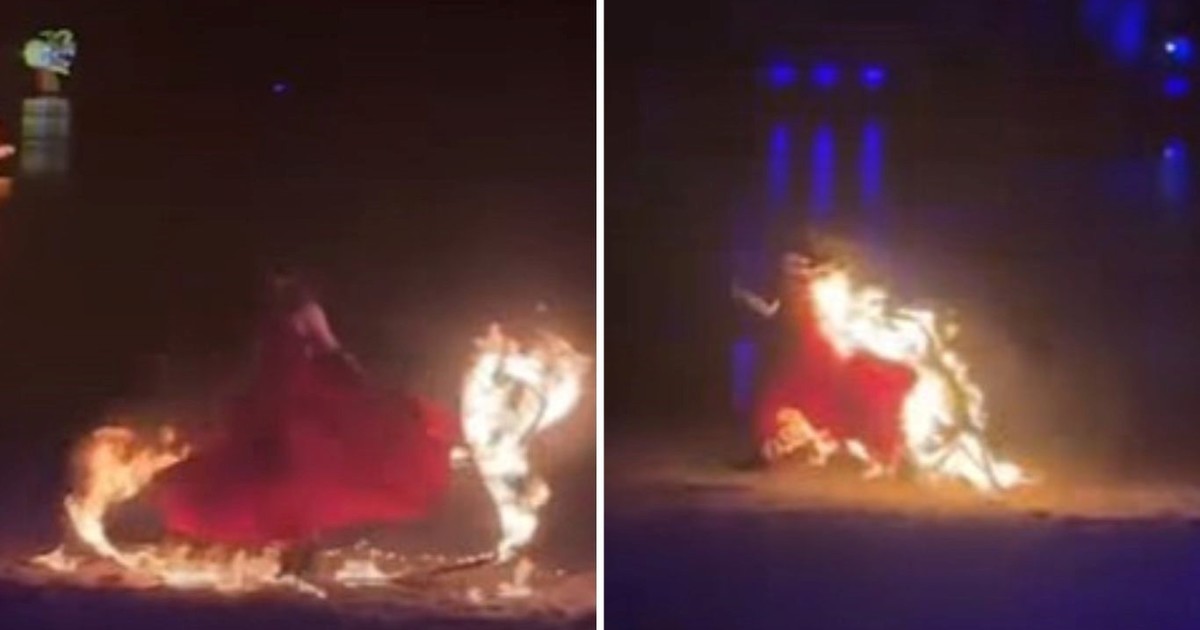 La artista vivió un momento dramático al quedar envuelta en llamas en pleno show. El video.Durante angustiantes segundos corrió hacia el agua. El momento en que logra salvar su vida.