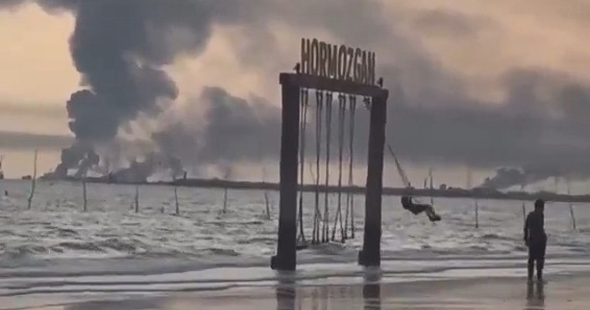 Un mes después de iniciada la guerra en Medio Oriente, el periódico británico The Times difundió una escena chocante.Imponentes columnas de humo son parte del escenario de esta filmación en la playa Khajeh Atta, cercana al estrecho de Ormuz, en Irán.